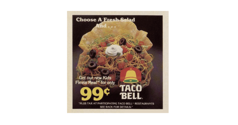 Taco Bell attempted seafood offerings, including seafood salad during experimental menu expansion phases, featuring imitation crab and other processed seafood ingredients. The product aimed to diversify the menu beyond traditional Mexican-inspired items. The seafood salad represented an attempt to capture health-conscious customers seeking lighter options.