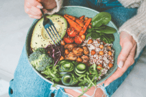 Meals combining fiber, fat, and protein help keep you fuller longer and reduce the urge to snack between meals. Acerra recommends prioritizing fiber-rich carbohydrates (like oats or quinoa), healthy fats (like olive oil or nuts), and quality protein (like eggs, tofu, or lean meat).