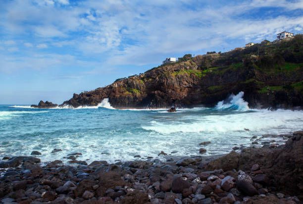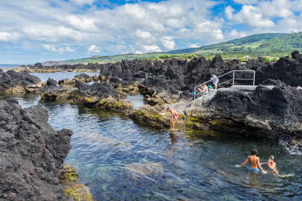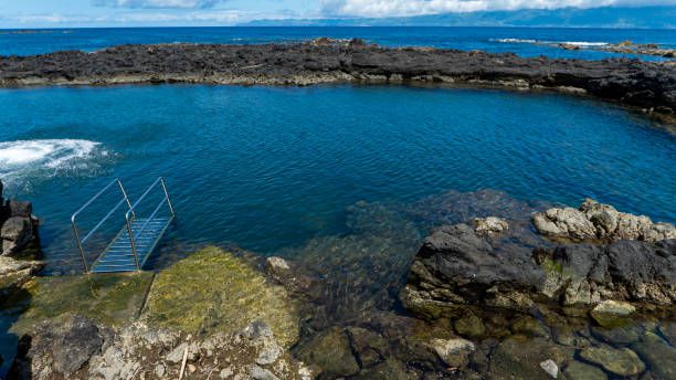 Perched on Sao Miguel Island’s northern coast, the Santo António Natural Pool or Poços de Santo António is a fan favorite. The pool is filled with crystal-clear water, and the rocky bottom is visible.