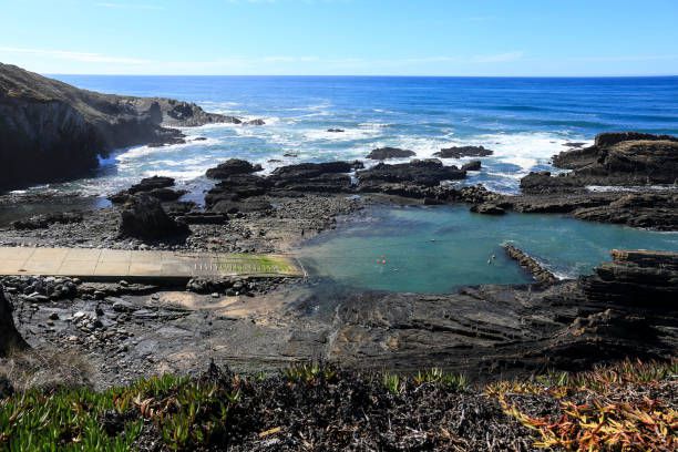 This spot boasts an expansive, easy-to-reach rocky beach. The Calhetas Natural Pools, situated in an open-sea region, are characterized by striking rock formations, including reefs visible at low tide.