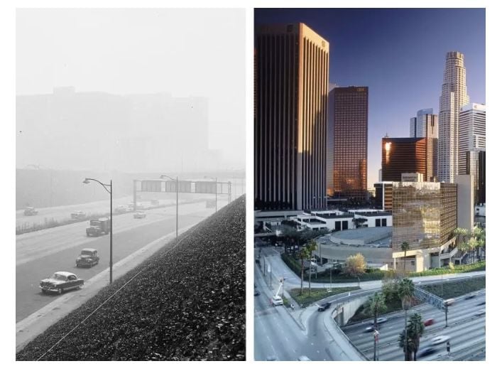 Los Angeles was another smoggy city made much brighter by regulations that limit air pollution.