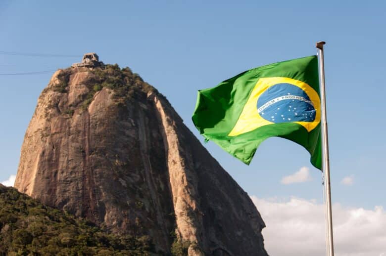 Each star represents a state in the country plus the Federal District. The banner across the globe reads “Ordem e Progresso” (“Order and Progress”), a nod to the country’s embrace of the positivist motto. This flag design was adopted in 1889, symbolizing the country’s lush landscape, wealth, and its vast, starry sky. It embodies Brazil’s forward-looking philosophy and diverse federation