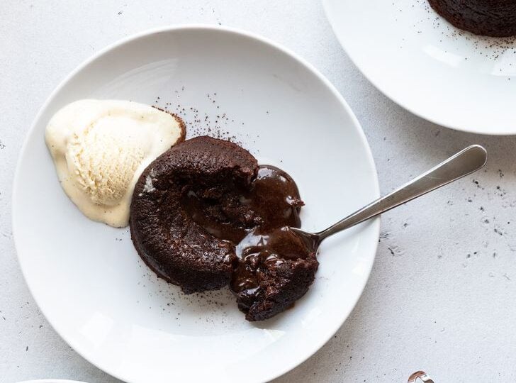 A writer for The Kitchn raved about the brownie pudding recipe after trying it but recommends you add a pinch of salt to lessen the sweetness — and serve your slices with vanilla ice cream. She also substituted cassis (black currant liqueur) for the framboise (raspberry) liqueur when she couldn’t find the latter.