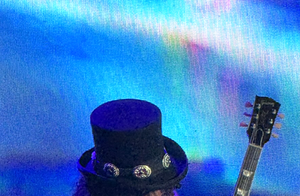 Was Guns N’ Roses’ guitarist Slash trying to copy the top hat worn by Marc Bolan on the cover of the T. Rex album “The Slider”? Or was he just trying to obscure his face with the curly hair that covered his eyes when he squished a hat over it? Whatever the origin story is, Slash is that hat.
