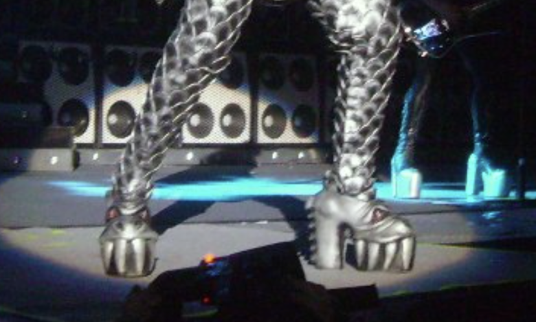 Really, the most famous part of KISS bassist Gene Simmons’ signature look is his very long tongue, which he always had whether the band was in makeup or not. Having said that, there’s no way to use that as the clue without using a picture of his face, so we’re going with his epic footwear instead.