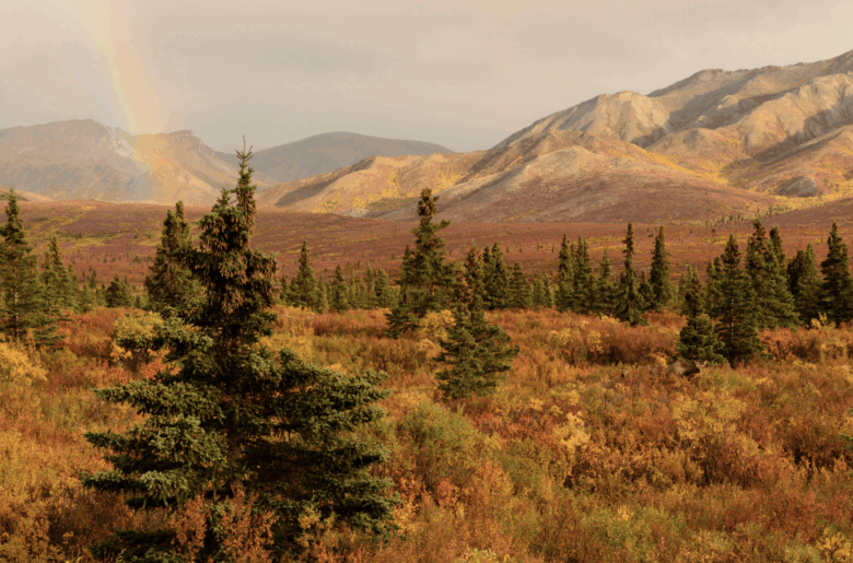 Denali National Park, Alaska, in vibrant fall colors.