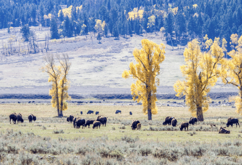 Bison and fall colors along Lamar River.