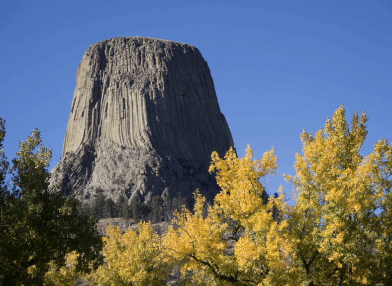 Fall brings bright colors to Devils Tower.