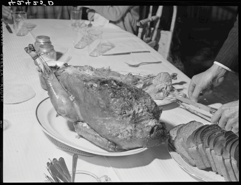 The Thanksgiving turkey at the home of Timothy Levy Crouch. Ledyard, Connecticut, 1940.