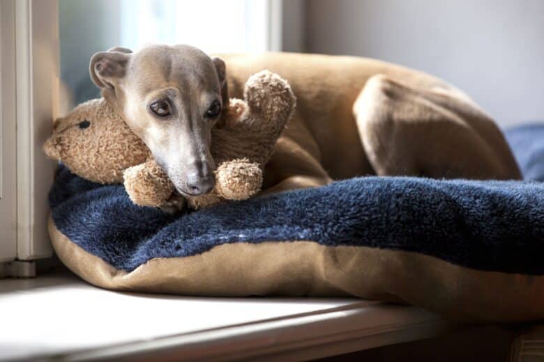 Italian Greyhounds are affectionate and gentle, but they’re also sensitive. They have a strong affinity for their human companions and may form deep bonds, which can sometimes lead to separation anxiety. Reduce their clinginess with a consistent routine, interactive toys, potential companionship, positive reinforcement, and regular exercise.