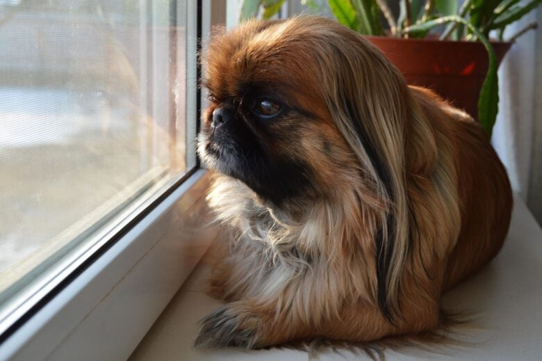 Pekingese dogs are characterized by their dignified and regal demeanor, often complemented by their luxurious coats and confident presence. But the Pekingese can develop separation anxiety, as they bond closely with their owner. Encourage independence with positive training, routines, gradual separation, and interactive toys.